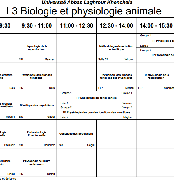 L3 Biologie et physiologie animale