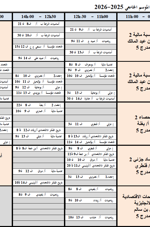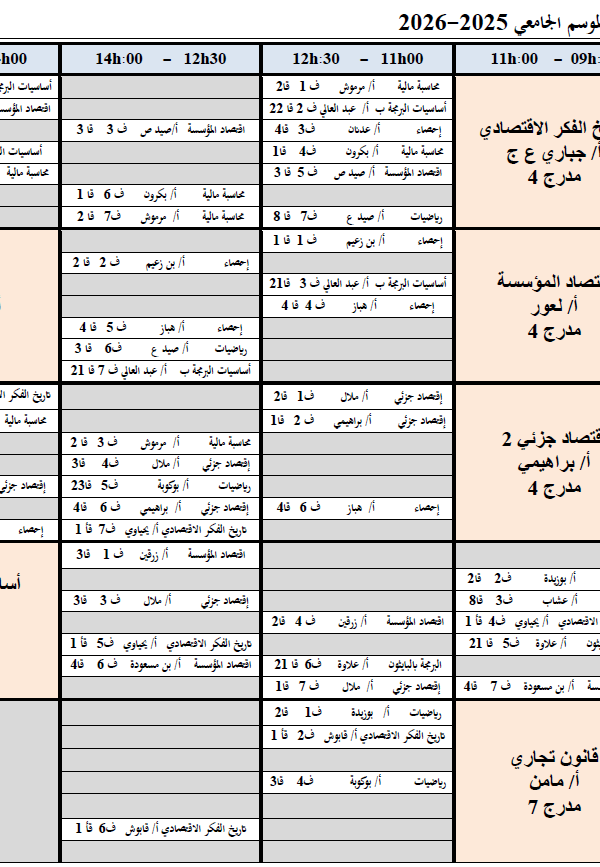 لتوزيع الزمني الاسبوعي للسداسي الثاني من الموسم الجامعي 2025-2026 السنة اولى جذع مشترك مجموعة بكلية العلوم الاقتصادية, التجارية و علوم التسيير2026-01-22