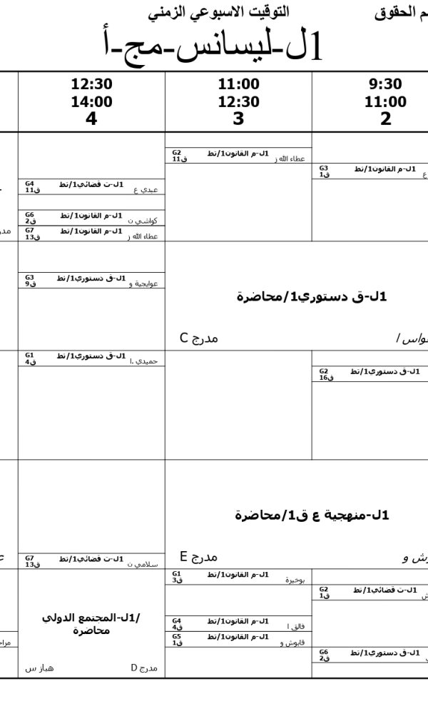 التوقيت الاسبوعي حقوق – سنة أولى ليسانس مج -أ-