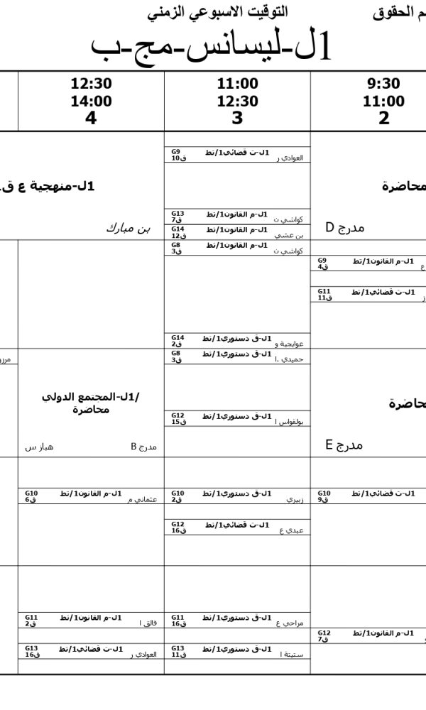 التوقيت الاسبوعي حقوق – سنة أولى ليسانس مج -ب-