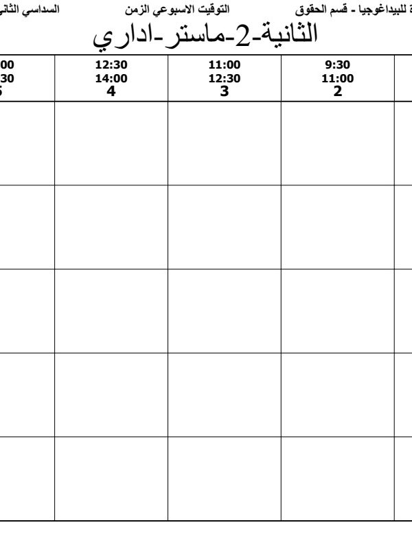 التوقيت الاسبوعي حقوق سنة 2 ماستر – قانون إداري –