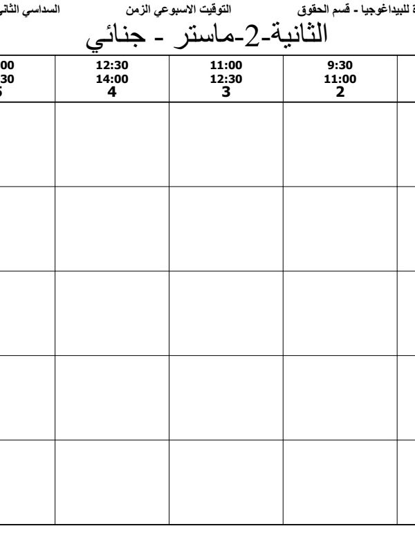 التوقيت الاسبوعي حقوق سنة 2ماستر – قانون جنائي –