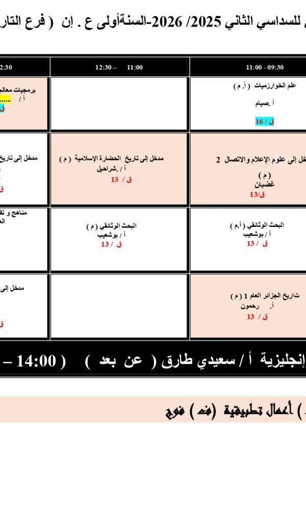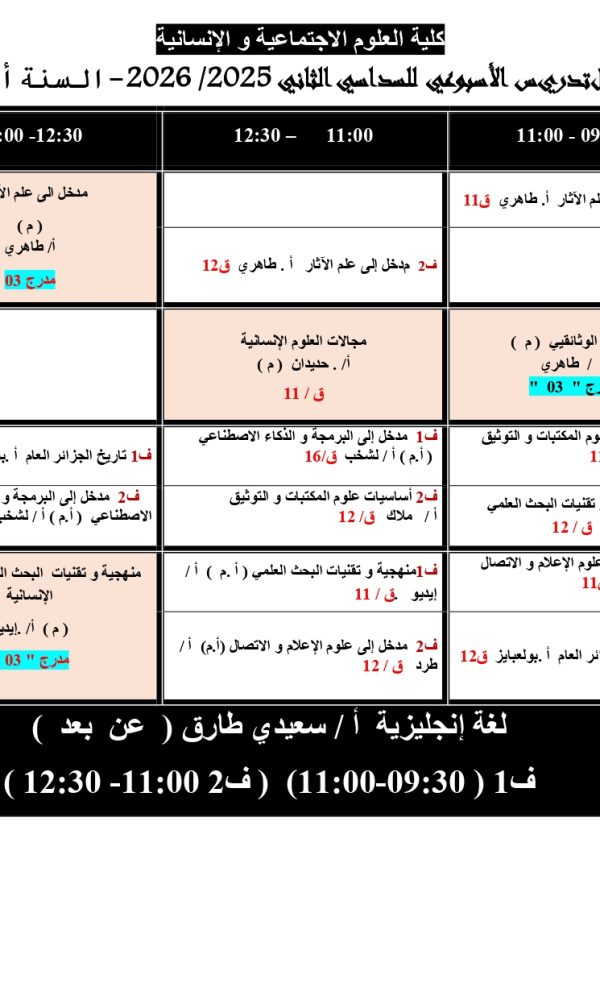 توزيع-زمني-قسم العلوم الإنسانية -ل1