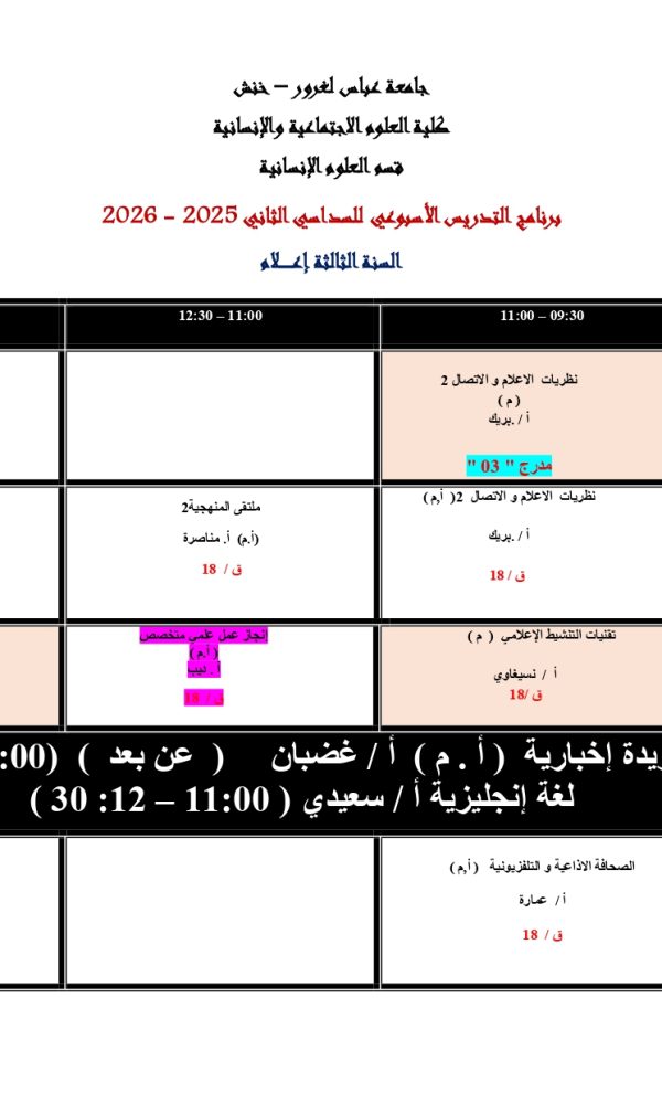 توزيع-زمني-قسم العلوم الإنسانية -ل3 اعلام