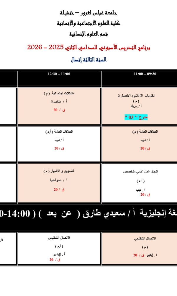 توزيع-زمني-قسم العلوم الإنسانية -ل3 اتصال