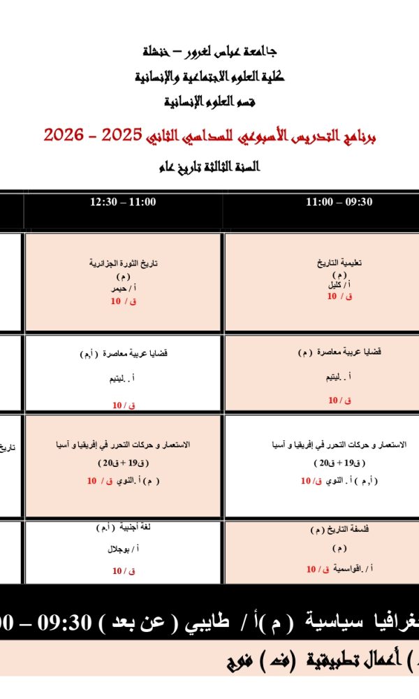 توزيع-زمني-قسم العلوم الإنسانية -ل3 تاريخ