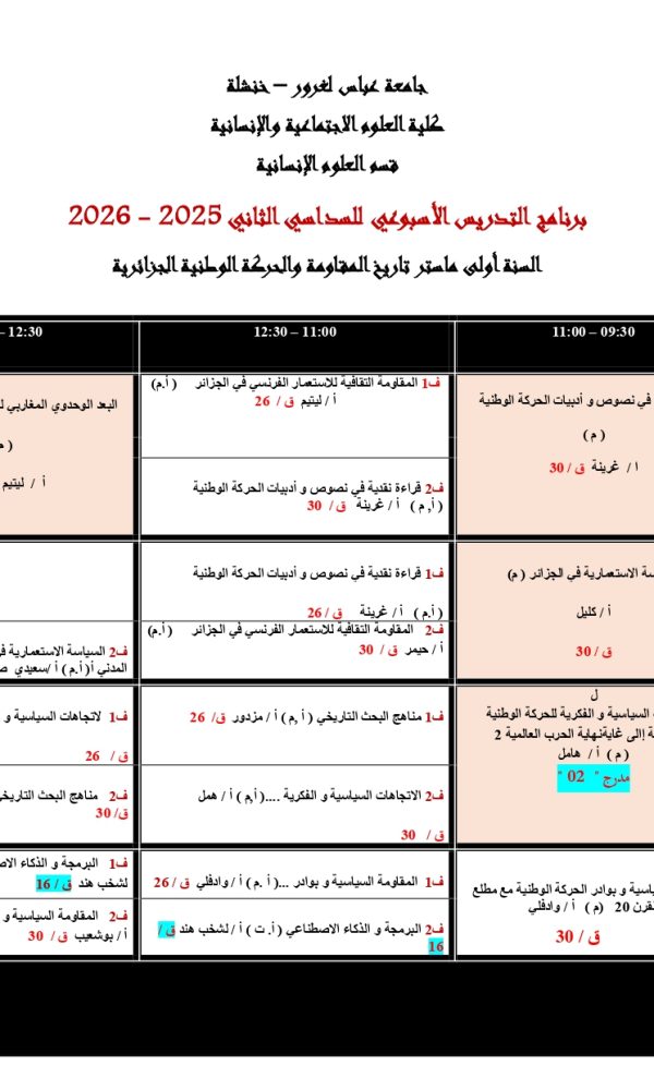 توزيع-زمني قسم العلوم الإنسانية-M1 تاريخ المقاومة و الحركة الوطنية