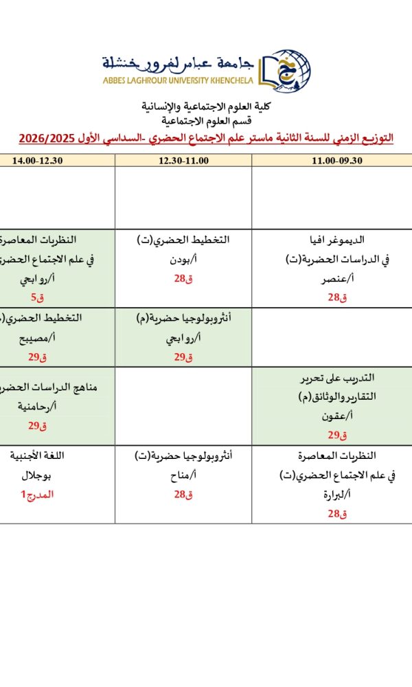 توزيع-زمني-قسم العلوم الاجتماعية-M2 علم الاجتماع التنظيم و العملكلية العلوم الاجتماعية والإنسانية2025-10-08