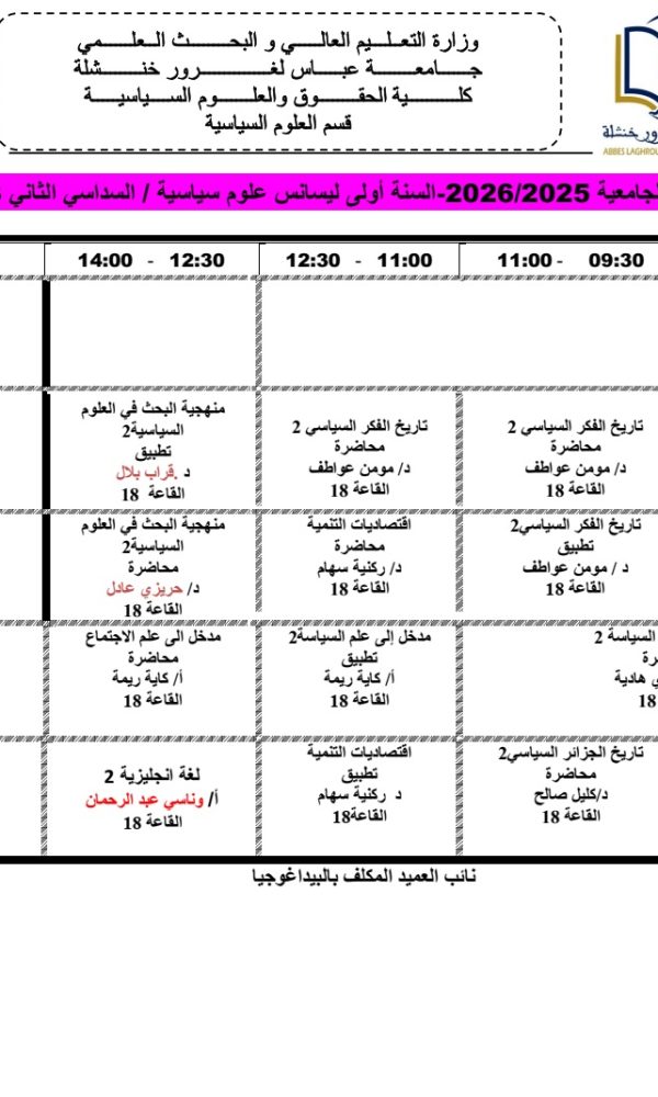 التوقيت الاسبوعي علوم سياسية – سنة أولى ليسانس