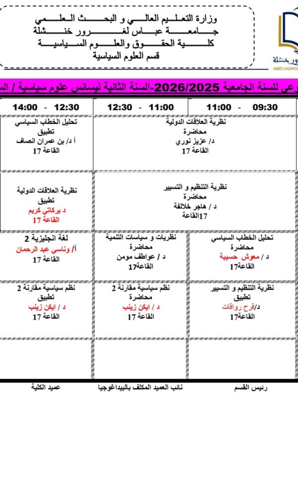 التوقيت الاسبوعي علوم سياسية – سنة ثانية ليسانس