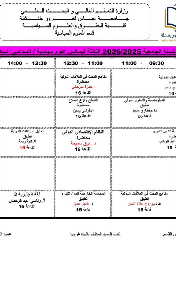 التوقيت الاسبوعي علوم سياسية – سنة ثالثة ليسانس