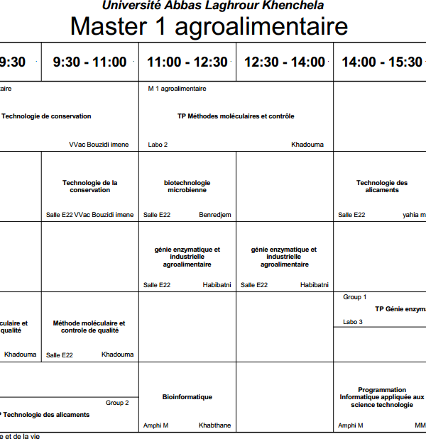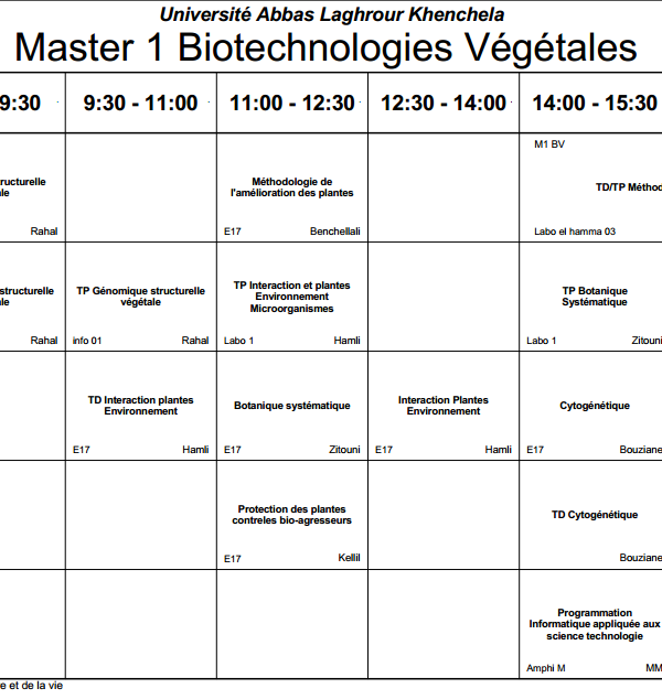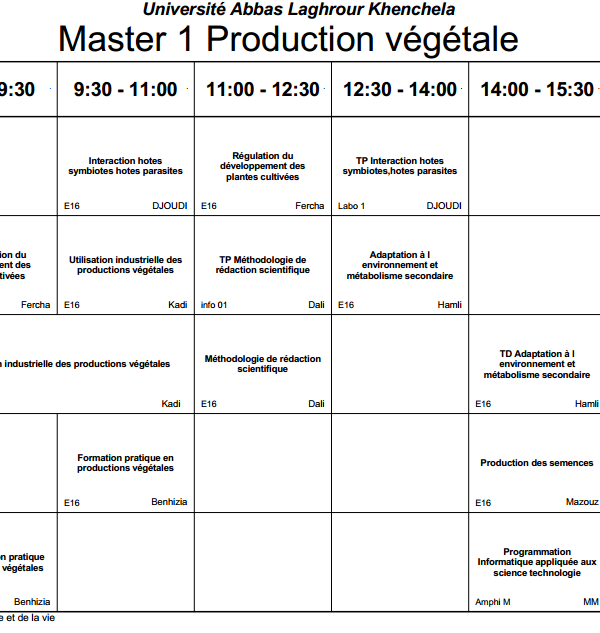 توزيع-زمني قسم العلوم الفلاحية -M1