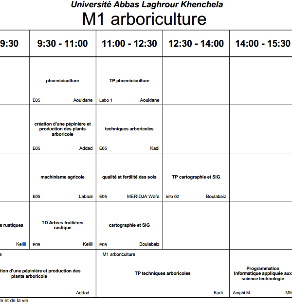 توزيع-زمني قسم العلوم الفلاحية -M2
