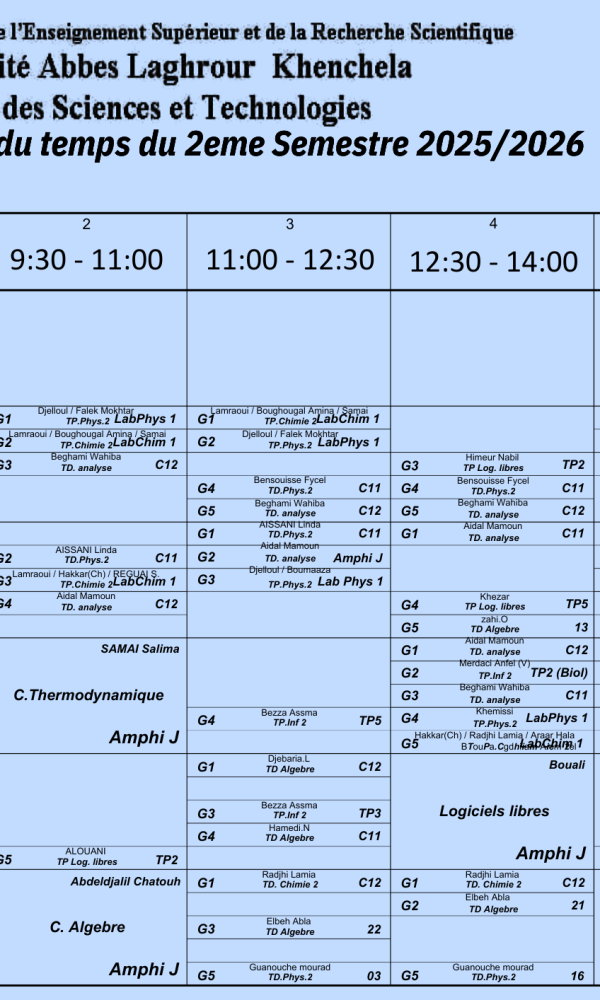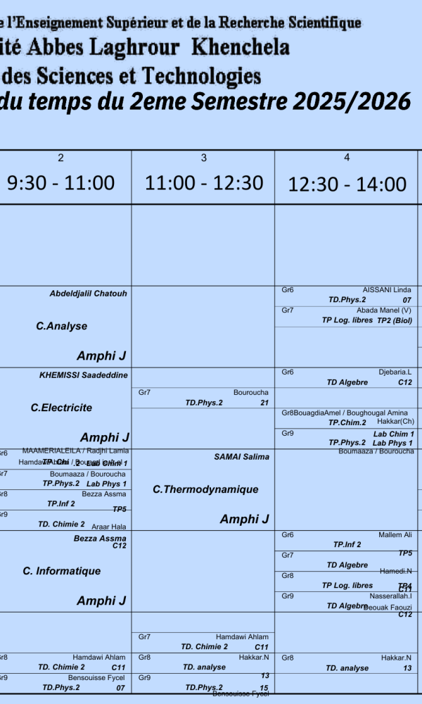 توزيع-زمني-قسم العلوم والتكنولوجيا -ل1
