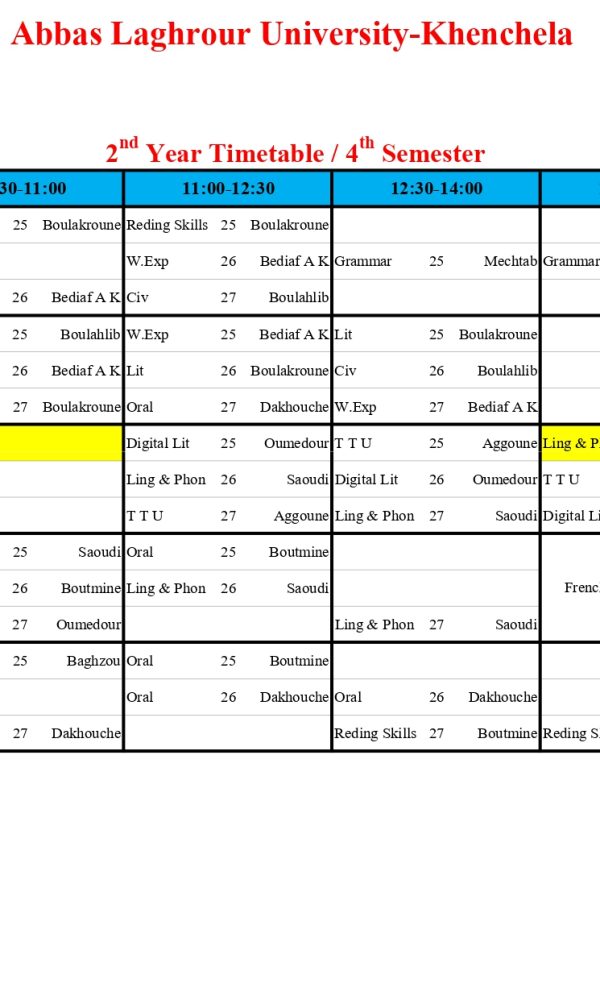 توزيع-زمني-قسم اللغة الانجليزية-ل2