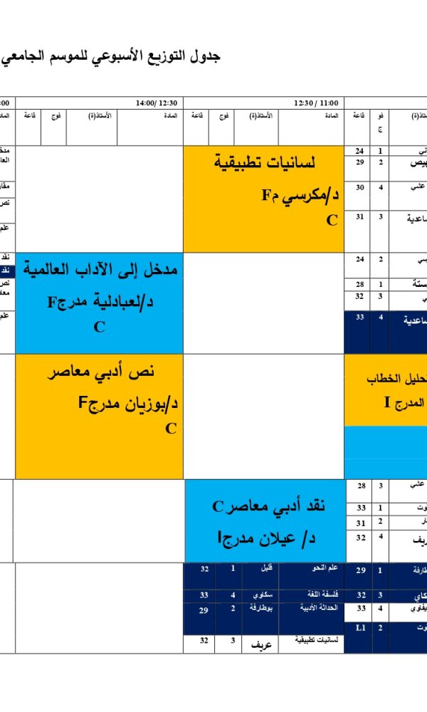 توزيع-زمني-قسم اللغة والأدب العربي-ل2