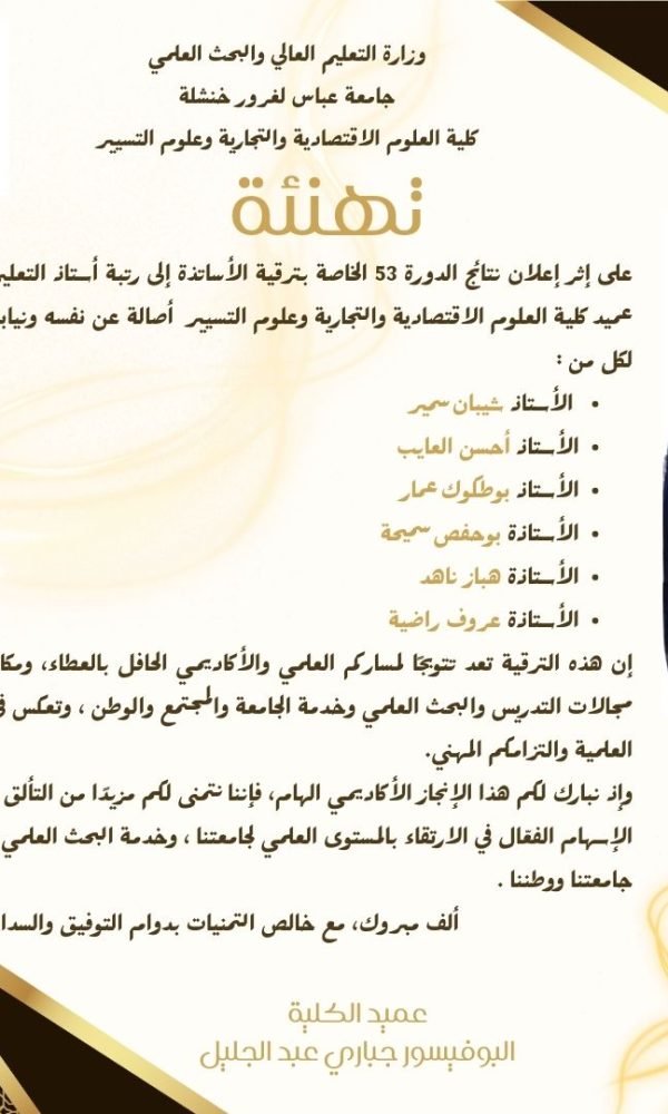 اعلان عن مسابقة احسن استاذ في كلية العلوم الاقتصادية والتجارية وعلوم التسيير
