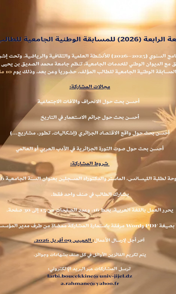 دعوتين للمشاركة في مسابقتين وطنيتين جامعيتين موجهتين للطلبة