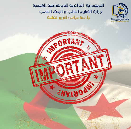 “بناءً على توجيهات إدارة الجامعة، وتحت إشراف السيدة نائب مدير الجامعة للبحث العلمي، تم تنظيم اختبار تحديد مستوى اللغة الإنجليزية لطلبة الدكتوراه الجدد بتاريخ 26 ماي 2025، وذلك في حرم جامعة عباس لغرور بخنشلة. جاء هذا الاختبار ضمن إطار الاستعدادات الأكاديمية للسنة الجامعية 2024-2025، حيث تمت عملية التنفيذ وفق آليات مُحكمة لضمان الفعالية والشفافية.” ... اقرأ أكثر